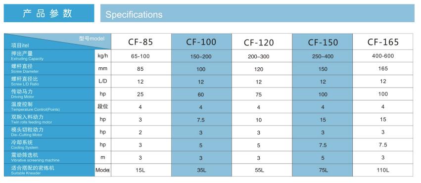 此機(jī)臺(tái)用于PVC,EVA,TPR等塑膠原料的生產(chǎn),包括主機(jī),雙腕入料,模頭切粒等系統(tǒng)將密煉機(jī)攪拌好的原料經(jīng)雙腕擠入造粒機(jī)內(nèi)經(jīng)螺桿擠出后切成粒子,此機(jī)臺(tái)操作簡(jiǎn)單